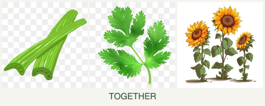 Competition for Resources: Sunflowers’ extensive root systems may compete with celery and parsley for nutrients. Ensure soil is rich in organic matter to mitigate this.
