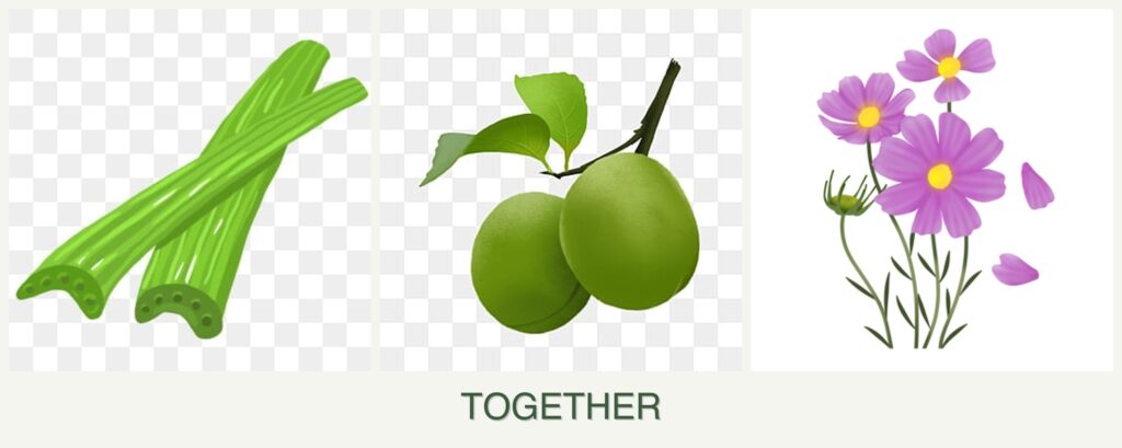 - Growth Requirements: Celery prefers partial shade and consistent moisture, while plums and cosmos need full sun. Planting cosmos nearby can attract beneficial insects to both celery and plums.