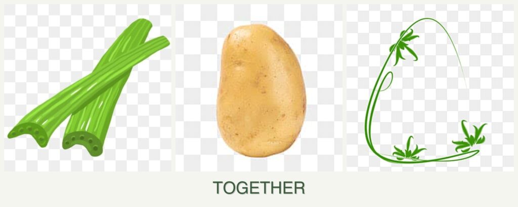 - Celery and Potatoes: Celery can help deter some pests that typically affect potatoes, such as certain beetles. Additionally, celery’s shallow root system doesn’t compete aggressively with potatoes’ deeper roots for nutrients.