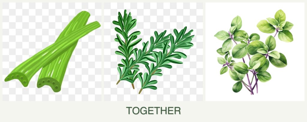 Planting celery, rosemary, and oregano together can offer several benefits: