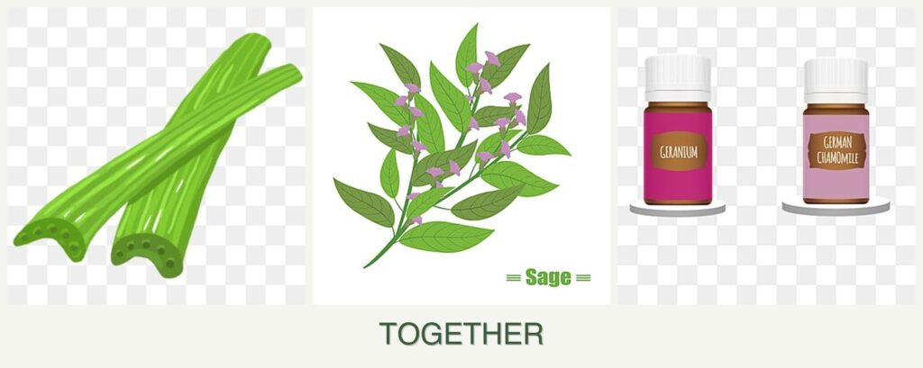 - Growth Requirements: Celery needs consistent moisture; sage prefers well-drained soil. Geraniums are adaptable but generally favor similar conditions to sage.