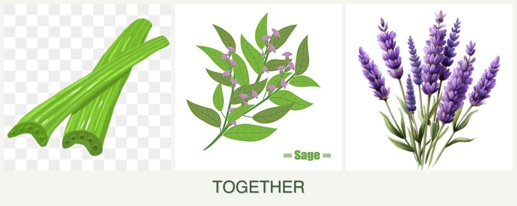 - Soil Health Benefits: Sage and lavender can help improve soil structure with their root systems, benefiting celery.