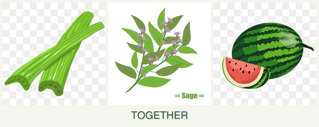 - Pest Control: Sage is known for its pest-repellent properties, which can benefit both celery and melons by deterring common pests such as aphids and beetles.