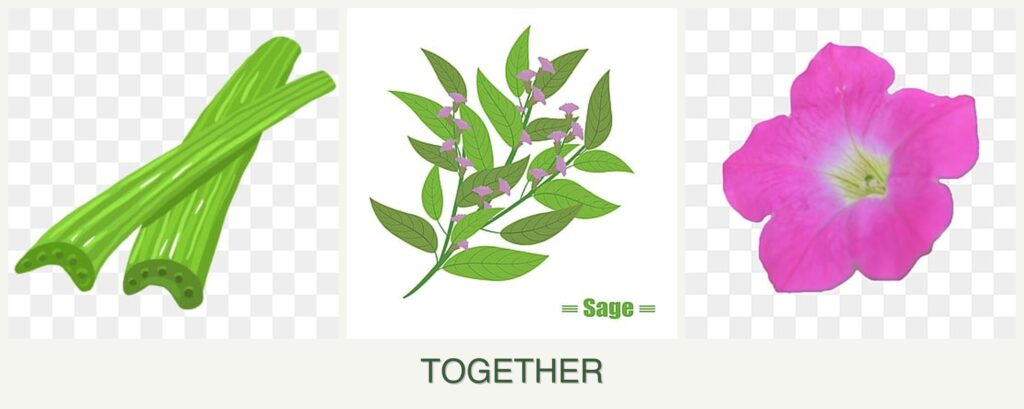 Can you plant celery, sage, and petunias together? Yes, you can plant these three together, but with some considerations. Each plant offers unique benefits that can complement the others, yet their differing needs must be carefully managed.