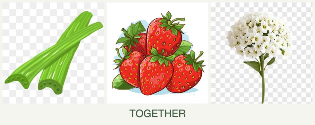 YES, celery, strawberries, and alyssum can be planted together, and they often complement each other well. Here’s why: