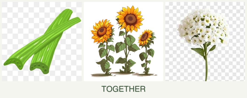 Pest Repellent Properties: Alyssum attracts beneficial insects that help control aphid populations on celery. Sunflowers can draw pests away from other plants.