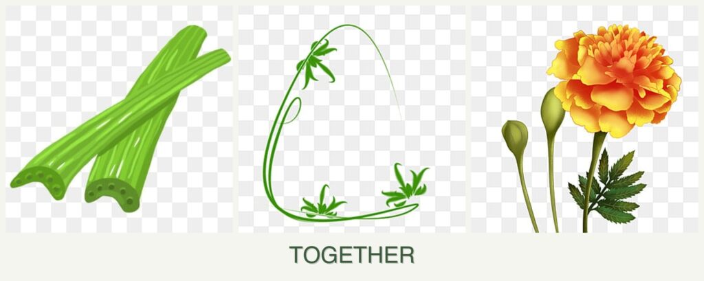 Planting celery, tarragon, and marigolds together offers several advantages: