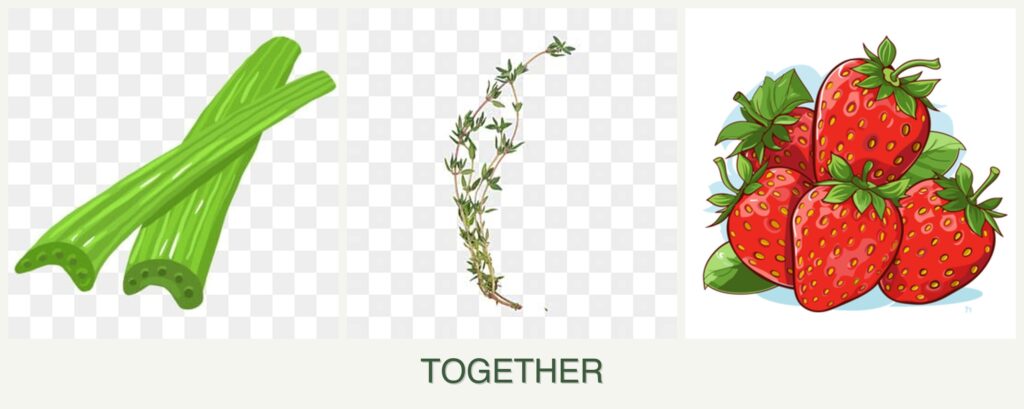 - Growth Requirements: Celery and strawberries both prefer cooler temperatures, while thyme is more tolerant of heat. This makes them suitable companions in temperate climates.