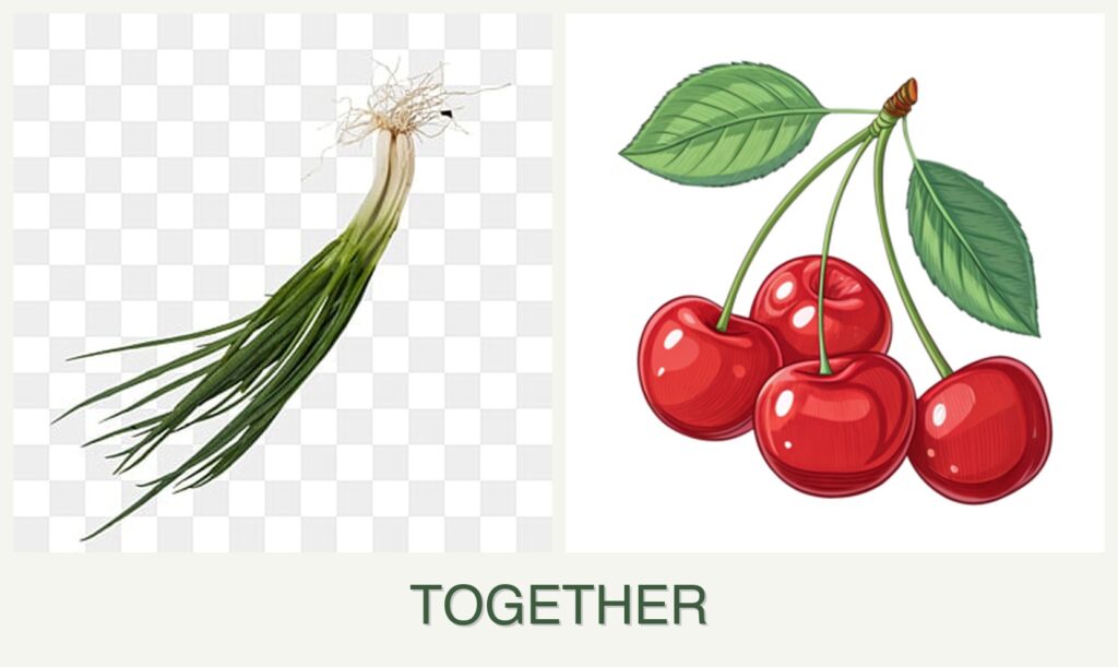 - Growth Requirements: Both chives and cherries thrive in full sun and well-drained soil.