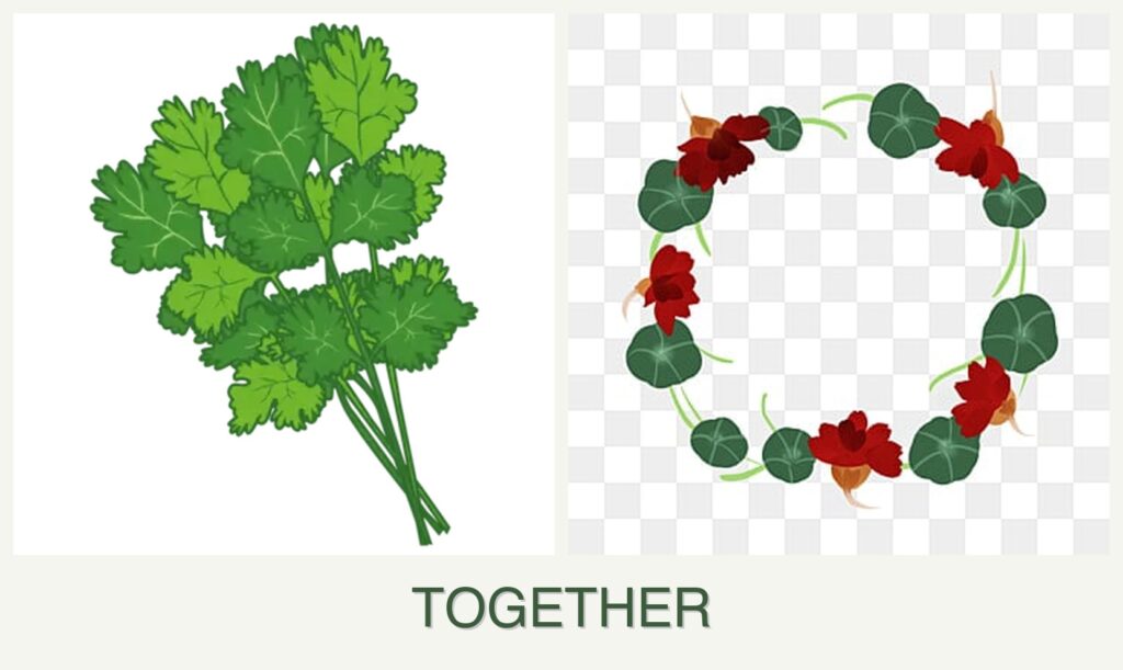 - Pest Control: Cilantro repels pests like aphids, while nasturtiums attract them, acting as a trap crop.