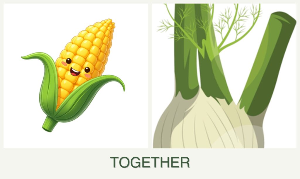 - Timing: Plant corn after the last frost and fennel a few weeks later.