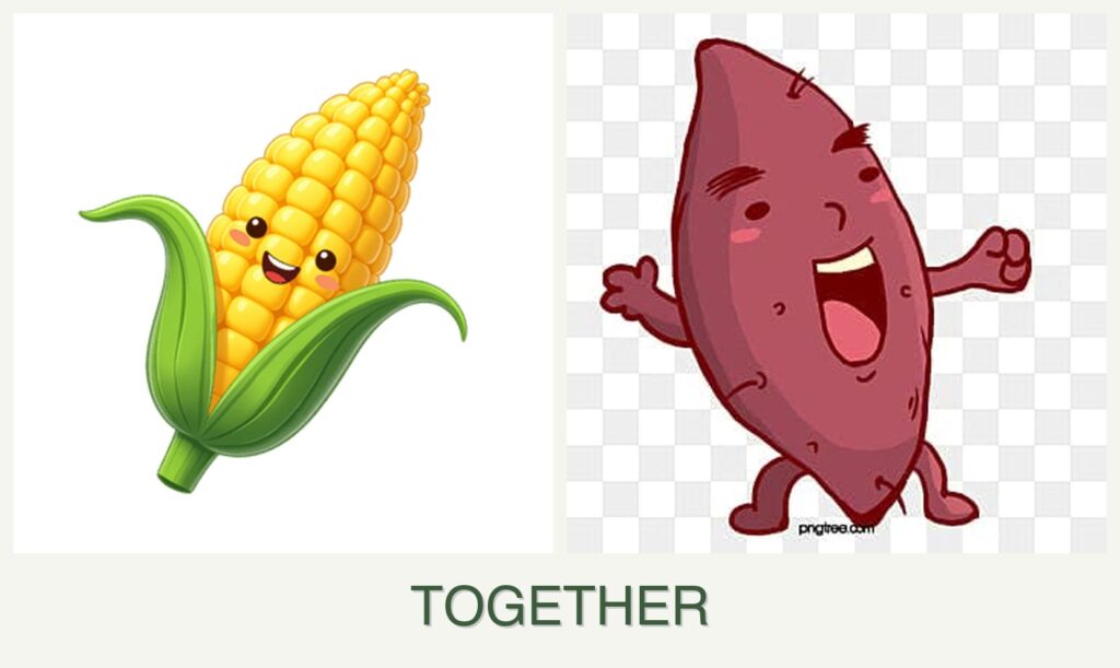 - Improved Flavor or Growth: The shade provided by corn can enhance the growth of sweet potatoes in hot climates.