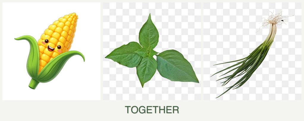- Space Efficiency: Corn’s vertical growth allows basil and chives to occupy the ground space, making efficient use of garden areas.