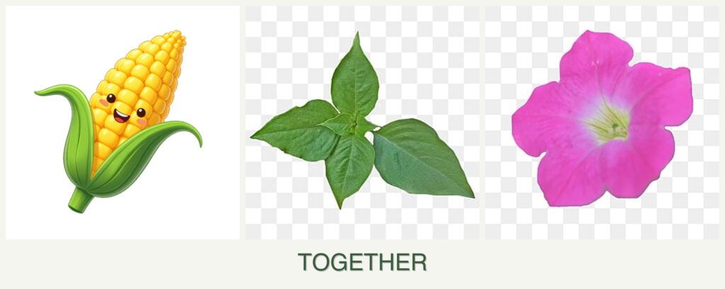 - Improved Growth: Corn provides a natural windbreak and partial shade, which can protect basil and petunias from harsh conditions.