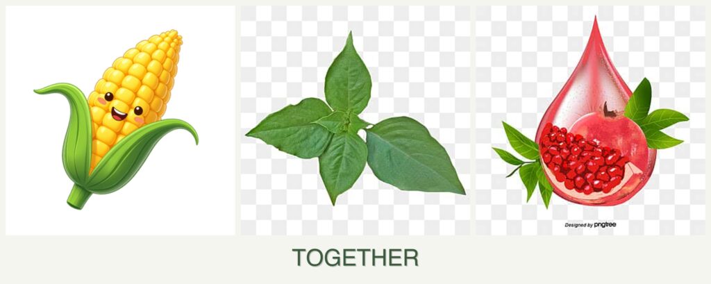 - Competition for Resources: Corn’s high nutrient demand can deplete resources for basil and pomegranates.