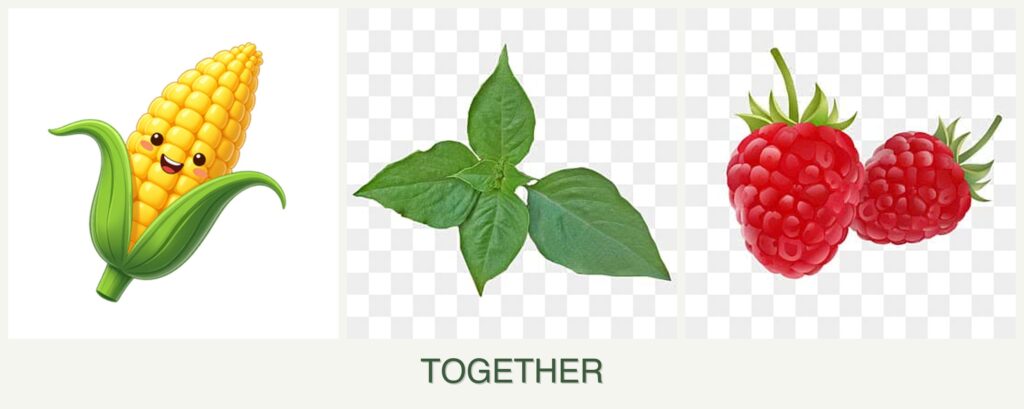 - Spacing: Corn’s height can overshadow basil, and raspberries need ample space to spread.