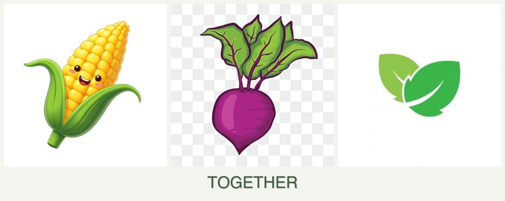 Nutrient Needs: Corn is a heavy feeder, requiring nitrogen-rich soil. Beets and mint have moderate nutrient needs, so they won’t overly compete with corn if properly spaced.