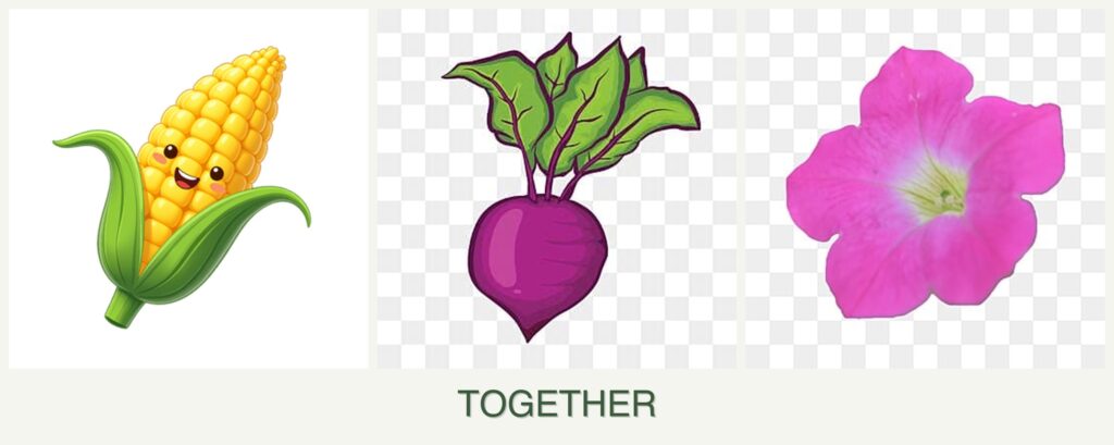 - Harvesting Considerations: Be mindful of corn’s height when harvesting beets and petunias.
