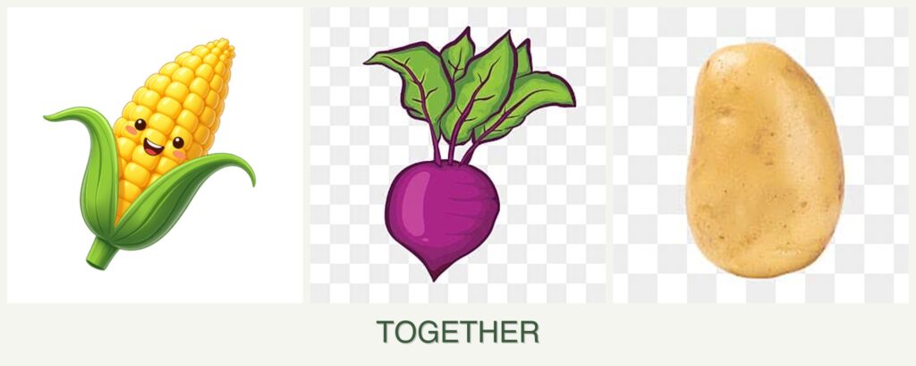 - Timing: Plant corn first, followed by potatoes and beets once the corn reaches a few inches in height.