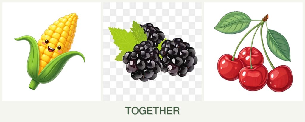 - Competition for Resources: Corn’s high nutrient demands can starve blackberries and cherries.