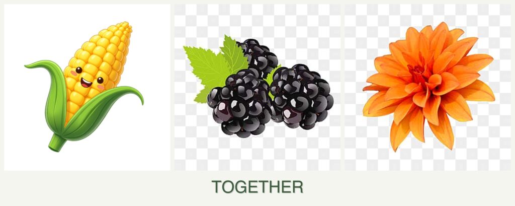 - Competition for Resources: Corn, blackberries, and dahlias can compete for sunlight, water, and nutrients, making it crucial to manage spacing and soil fertility.