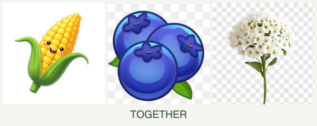 - Optimal Spacing: Keep corn and alyssum together but plant blueberries in a separate, acidic bed.
