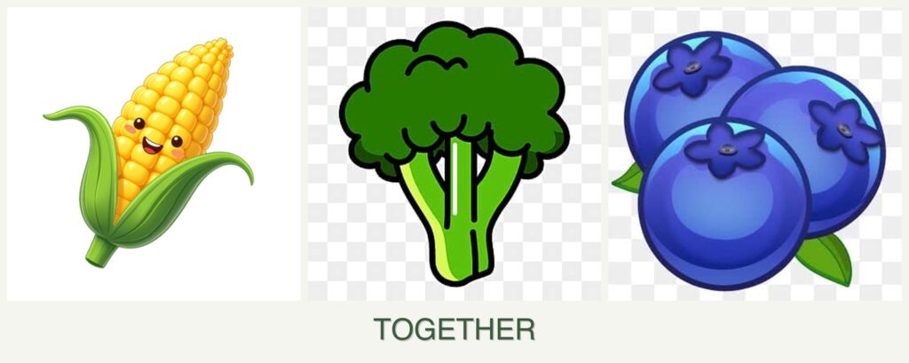 The short answer is: No, corn, broccoli, and blueberries are not ideal companions for each other. Here’s why: