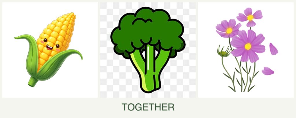 - Competition for Resources: Corn’s high nutrient demand can deplete the soil, leaving less available for broccoli and cosmos.