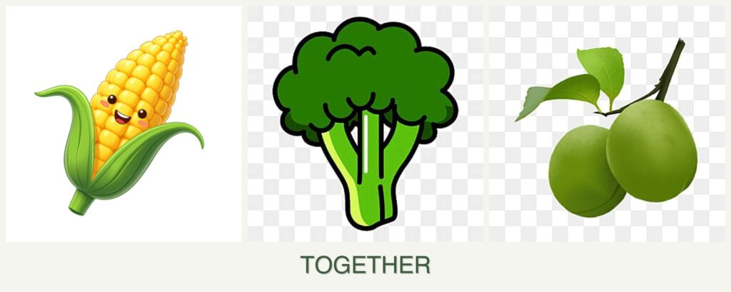 While corn, broccoli, and plums might not be ideal companions, certain benefits can be achieved by pairing compatible plants: