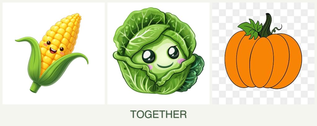 - Timing: Plant corn and pumpkins after the last frost, and cabbage in early spring or late summer.