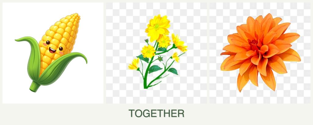 Planting corn, calendula, and dahlias together offers several advantages: