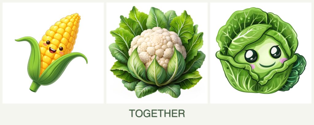 While corn, cauliflower, and cabbage are not ideal companions, some benefits can be found in strategic pairings: