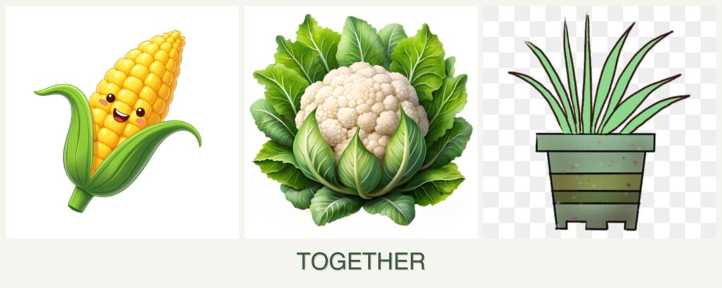 - Competition for Resources: Corn’s high nutrient demand can starve cauliflower and lemongrass.