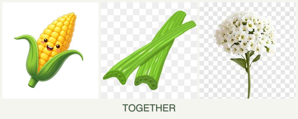 - Resource Competition: Corn’s high nutrient needs may lead to competition with celery if not adequately fertilized.