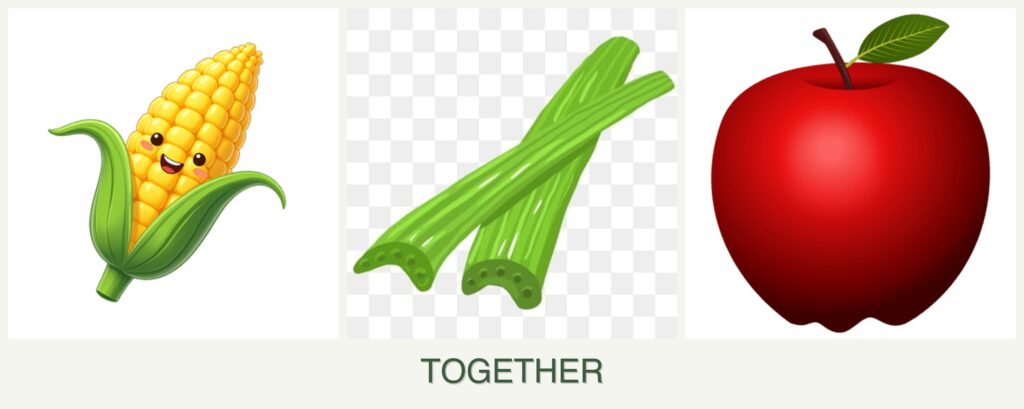 - Growth Requirements: Corn and apples both need full sun, while celery can tolerate partial shade. However, the tall growth of corn can overshadow celery.