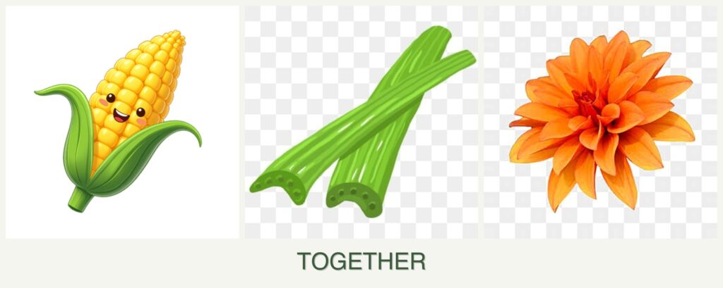 Planting corn, celery, and dahlias together offers several benefits: