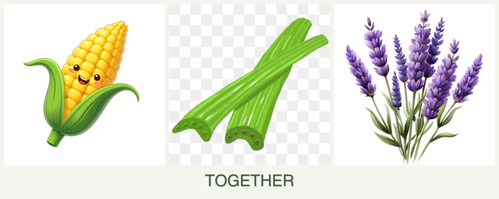 While corn, celery, and lavender don’t naturally complement each other, there are general benefits to consider when companion planting: