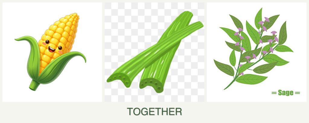 - Pest Control: Sage can help deter pests that might otherwise target corn and celery.