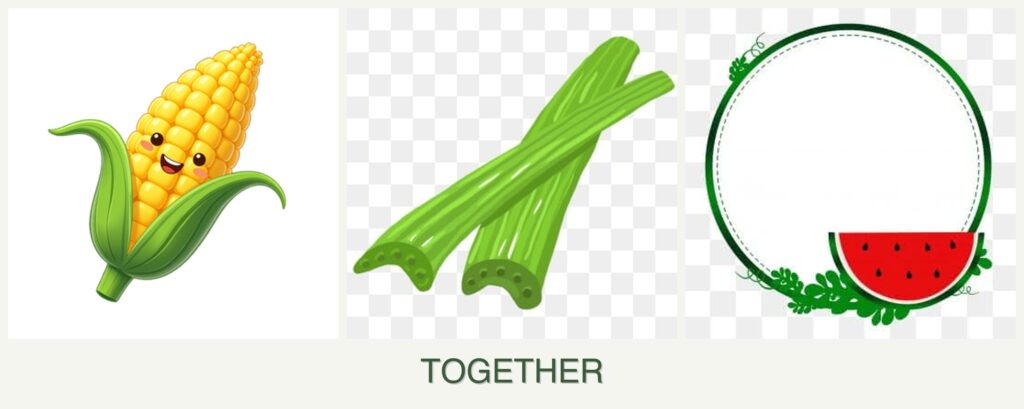 - Nutrient Needs: Corn is a heavy feeder, requiring nitrogen-rich soil. Celery and watermelons can compete for nutrients, so soil fertility must be managed.