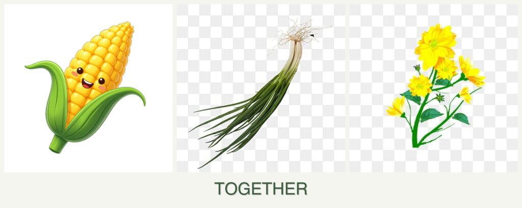 - Resource Competition: Corn’s high nutrient demand can outcompete chives and calendula.