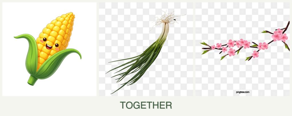 - Timing: Plant corn in spring after the last frost, chives in early spring or fall, and peaches in late winter or early spring.