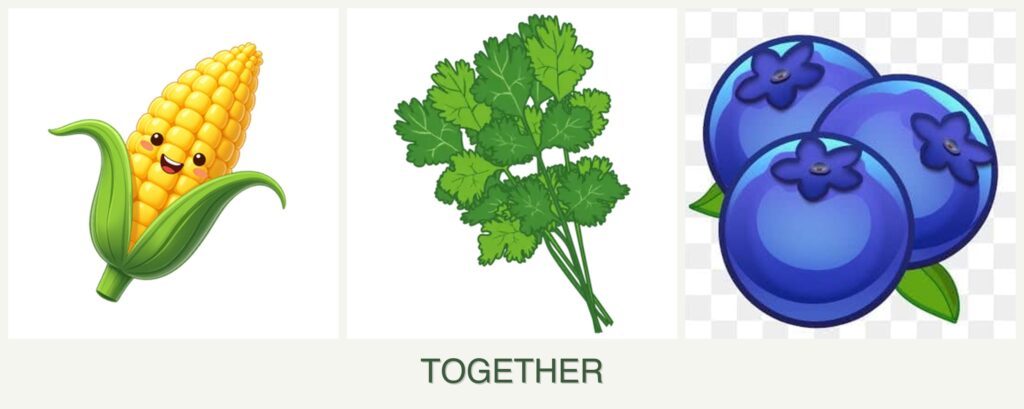 Can you plant corn, cilantro, and blueberries together? The short answer is NO. These plants have differing growth requirements that make them unsuitable companions.