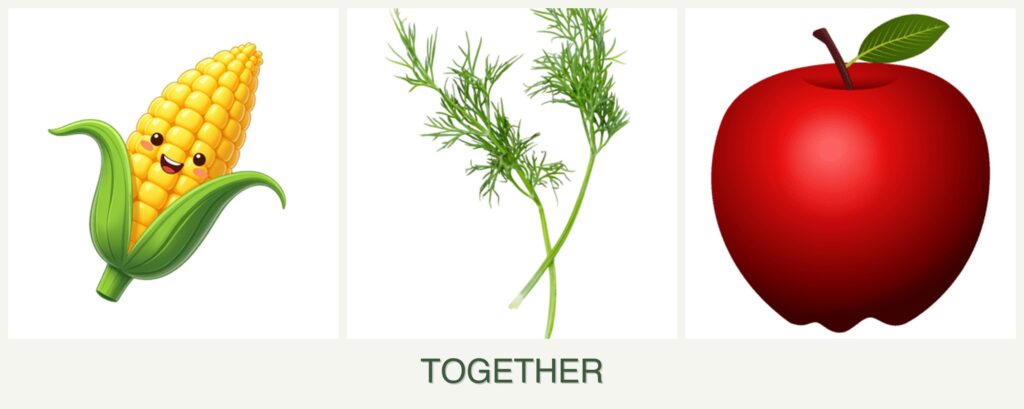 - Watering Needs: While corn and apples have similar water requirements, dill prefers less moisture, requiring careful watering.