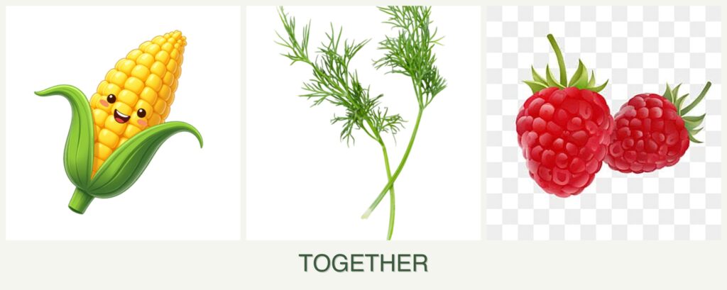 While corn, dill, and raspberries are not ideal companions, planting them with other suitable partners can offer benefits: