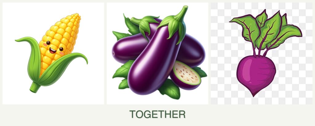 - Growth Requirements: Corn requires full sun and ample space to grow tall, while eggplants also prefer full sun but can benefit from some shade in extreme heat. Beets are more flexible, thriving in both full sun and partial shade.