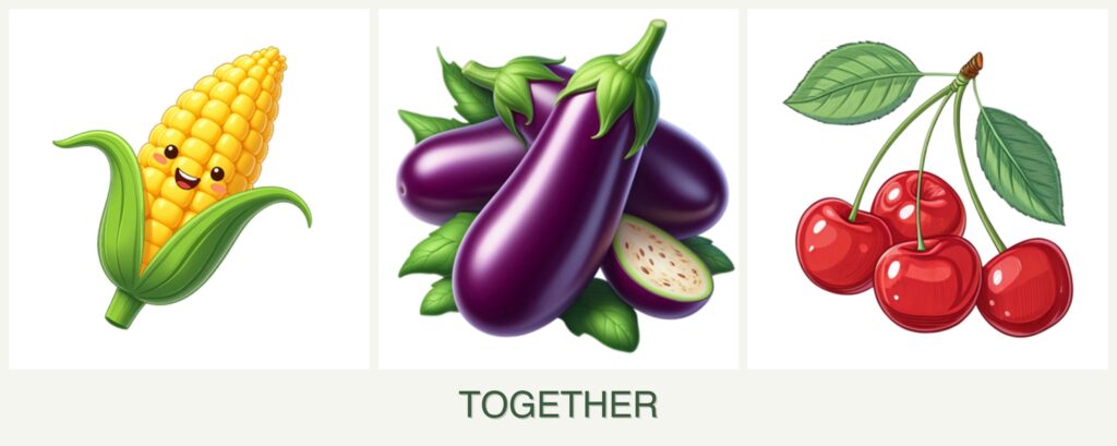 - Growth Requirements: Corn and eggplant both prefer warm temperatures and full sun, while cherries require well-drained soil and more space due to their tree form.