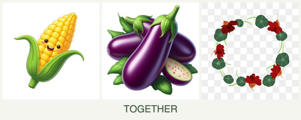 - Timing: Plant corn first, followed by eggplant and nasturtiums once the soil warms.