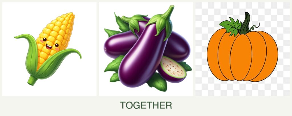 - Timing: Plant corn and pumpkins in late spring, when the soil is warm. Eggplants can be started indoors and transplanted after the last frost.