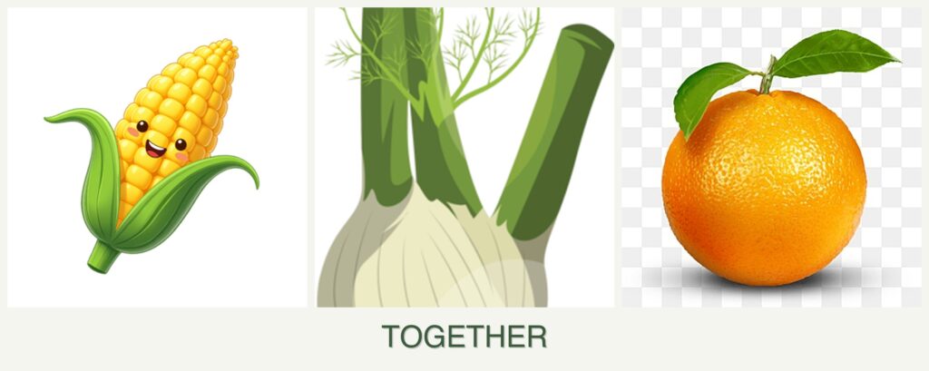 While corn, fennel, and oranges are not ideal companions, planting them separately with other compatible plants can offer benefits: