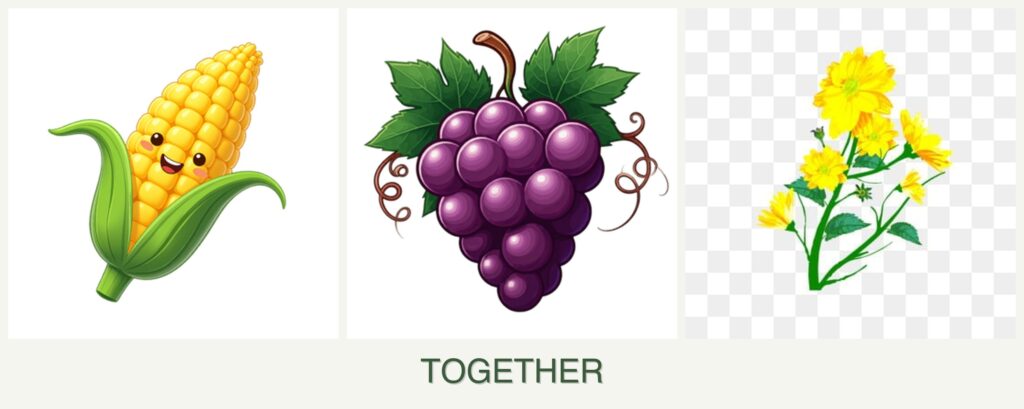 - Resource Competition: Corn’s high nutrient demand can compete with grapes and calendula, requiring careful soil management.